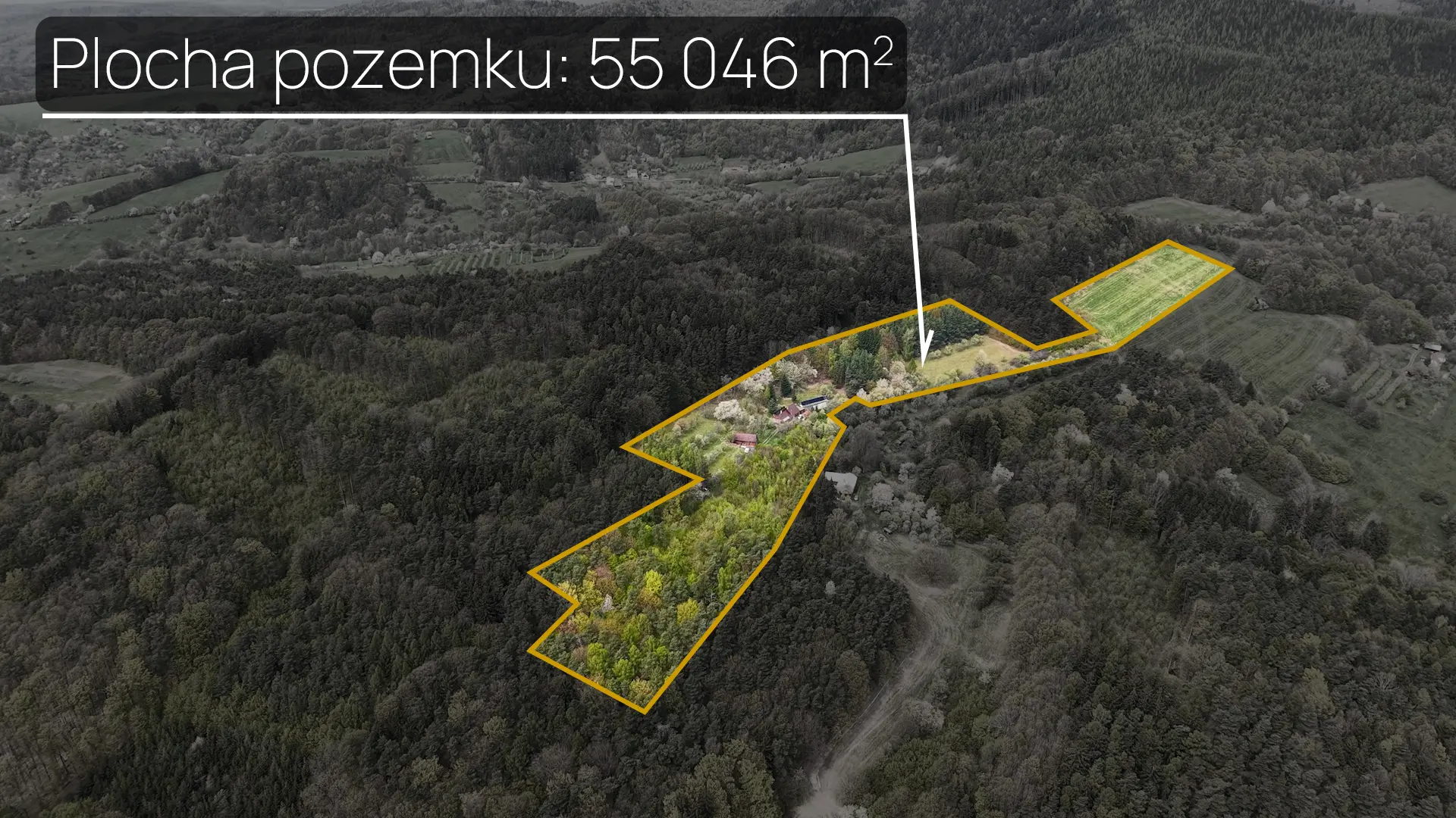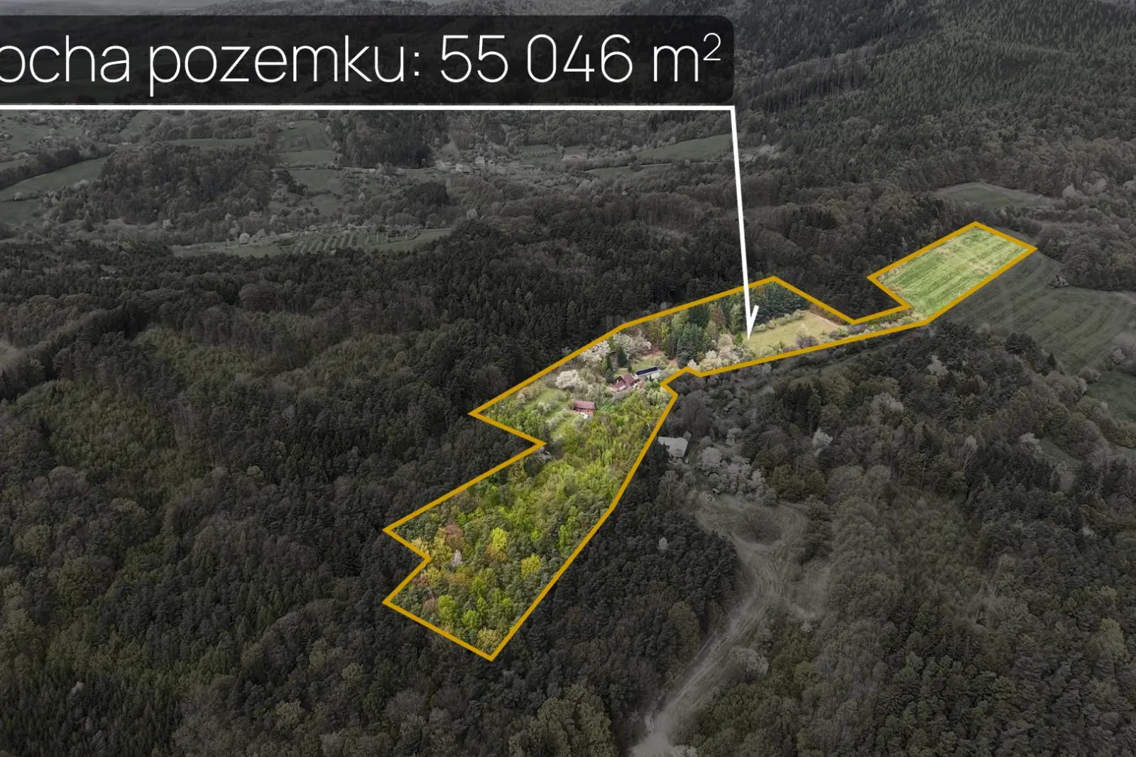 Dům se nachází na rozsáhlých pozemcích o celkové výměře cca 55 000 m², z nichž přibližně 16 787 m² tvoří lesní porosty a zbývající část zemědělská půda. Přibližně 600 m² je určeno k zastavění.