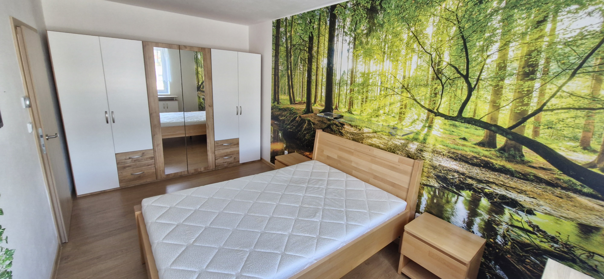 Dominantou je prostorná terasa o výměře 54 m² s krásným panoramatickým výhledem na město a okolní krajinu, která poskytuje dostatek soukromí i prostoru k odpočinku. Byt má podlahovou plochu 54 m² a praktickou dispozici s obývacím pokojem a kuchyňským koutem vybaveným vestavěnými spotřebiči. Samozřejmostí je moderní koupelna s vanou i sprchovým koutem a vinylové podlahy.